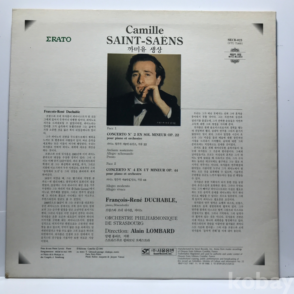 LP 17,010-4 Saint-Saëns - Concertos Pour Piano No.2 & 4 (1988) 자켓 EX+ 알판 EX+ 88 년 국내반