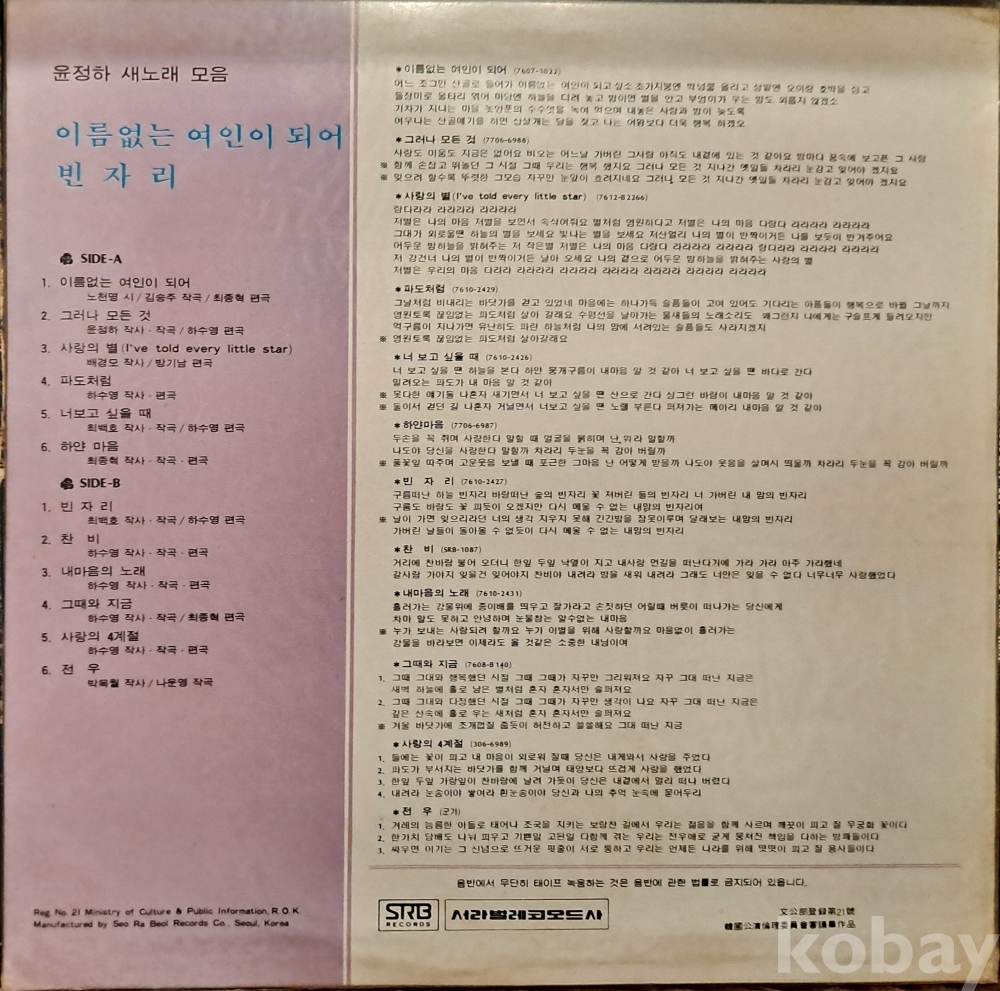 *윤정하 새노래모음 / 이름없는 여인... / 1978 / 서라벌