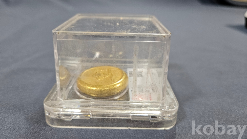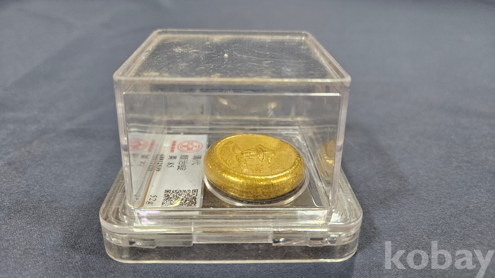 케이스안에 들어있는 앞면은 황제/ 뒷면은 용 문양의 금색덩어리 입니다.