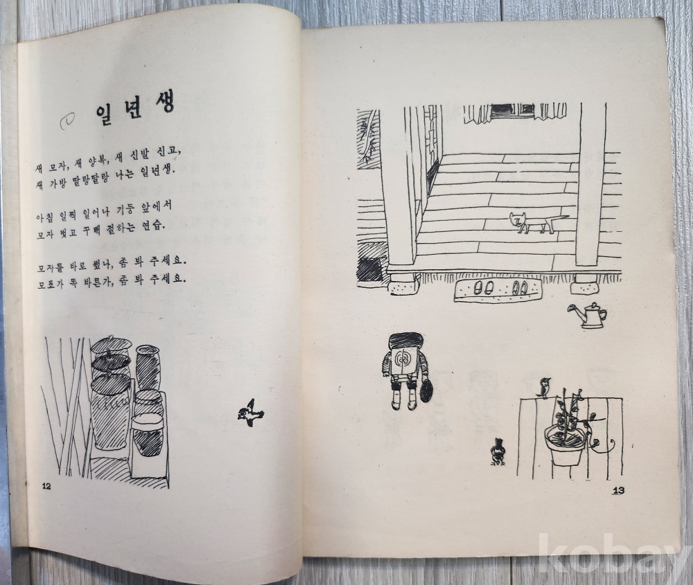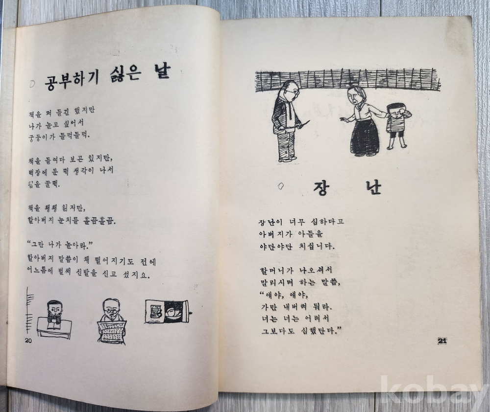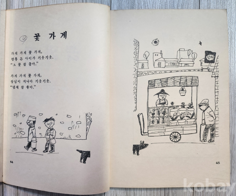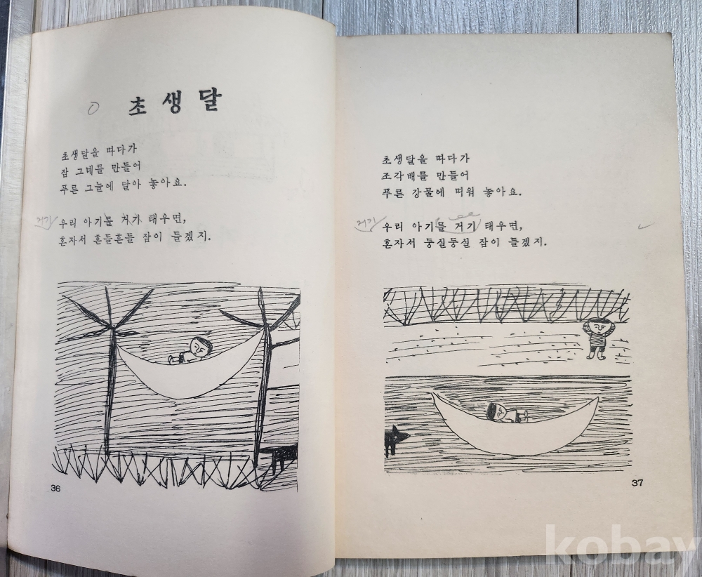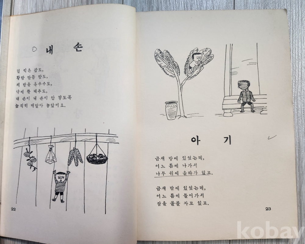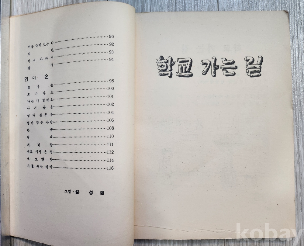 1960년 윤석중 동요집 엄마손(초판본) 그림 김성환(고바우영감작가) 118페이지마다 김성환 그림이 실려 있습니다 낙질 파본없이 상태 양호합니다