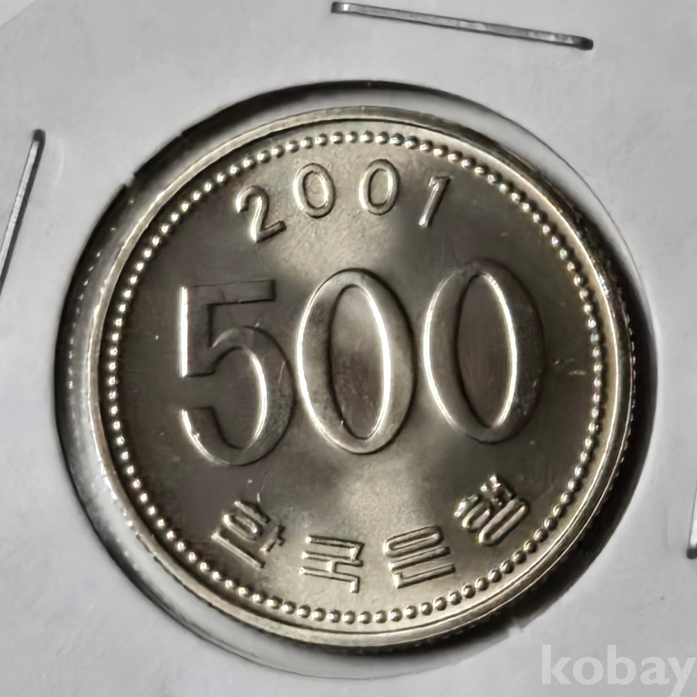 민트세트에서 꺼낸 = 한국은행 현행동전 500원 ==2001년 민트세트에서 꺼낸 완전미사용 주화