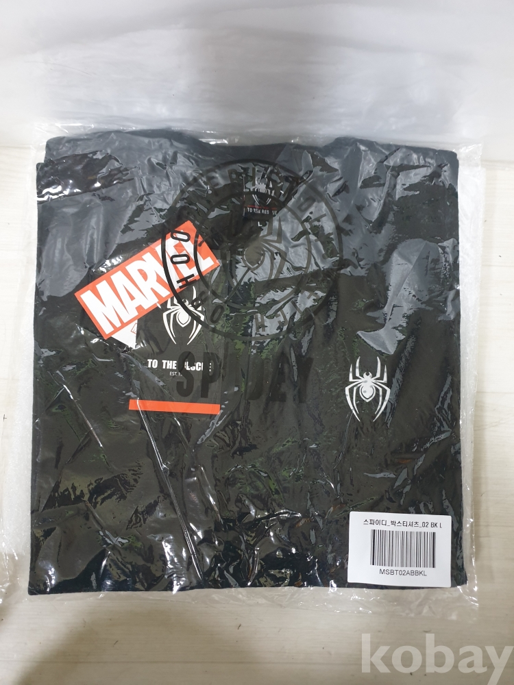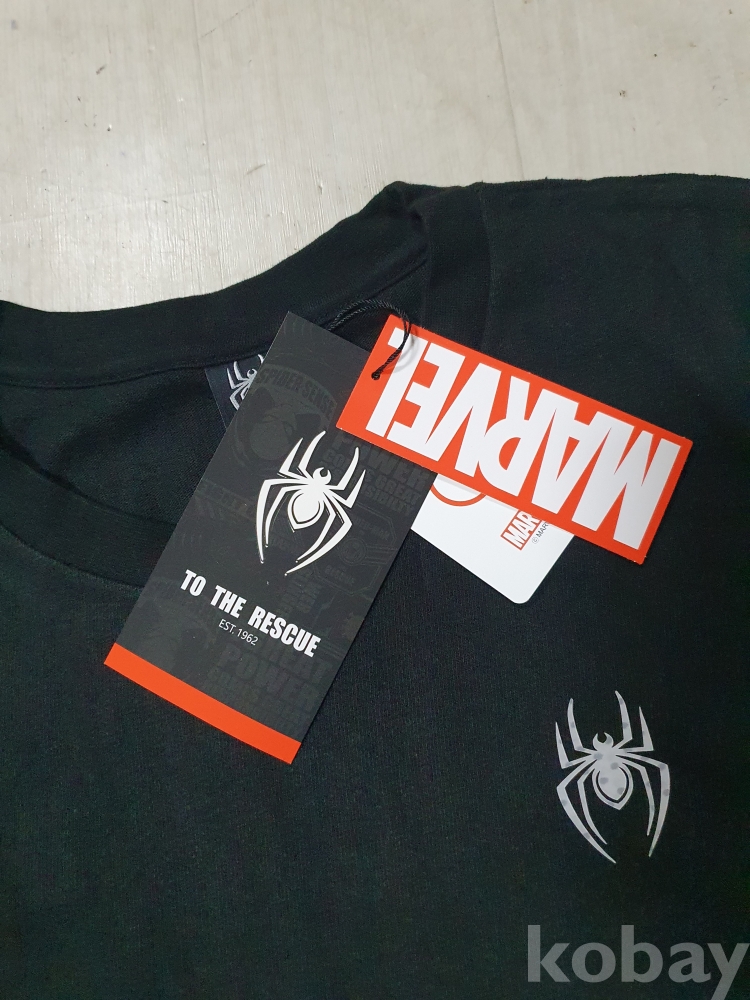 {천원경매} Y-2-0590 스파이디 검정 박스 티셔츠 (L)