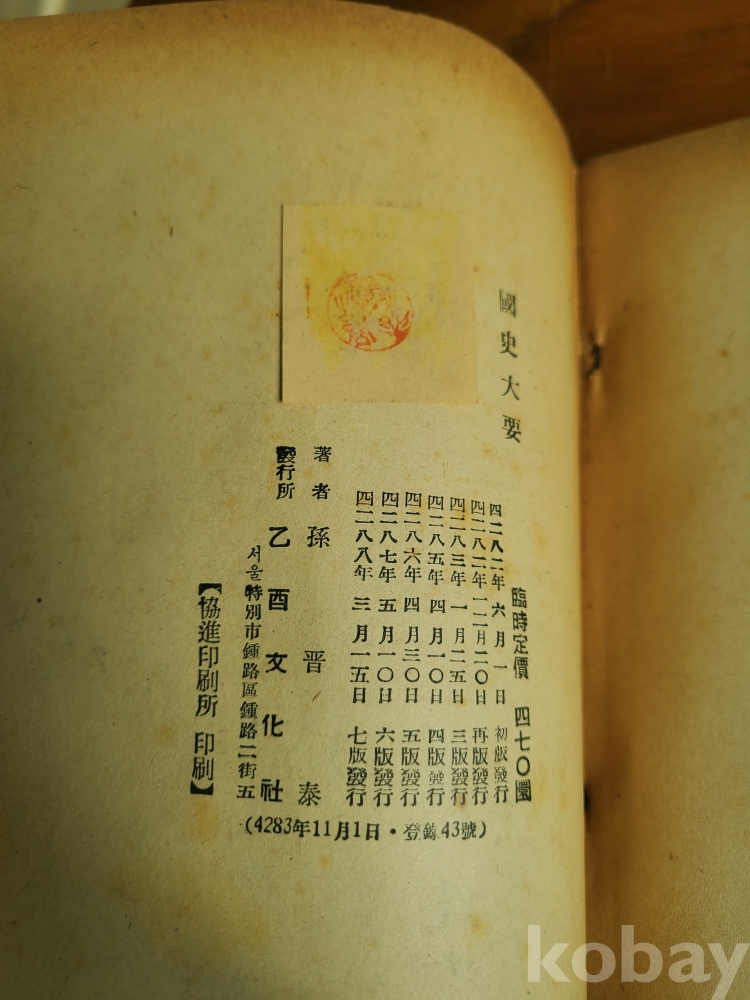 1. 국사대요, 손진태, 을유문사, 1955년, 263쪽, 상태 상, 사진 참조