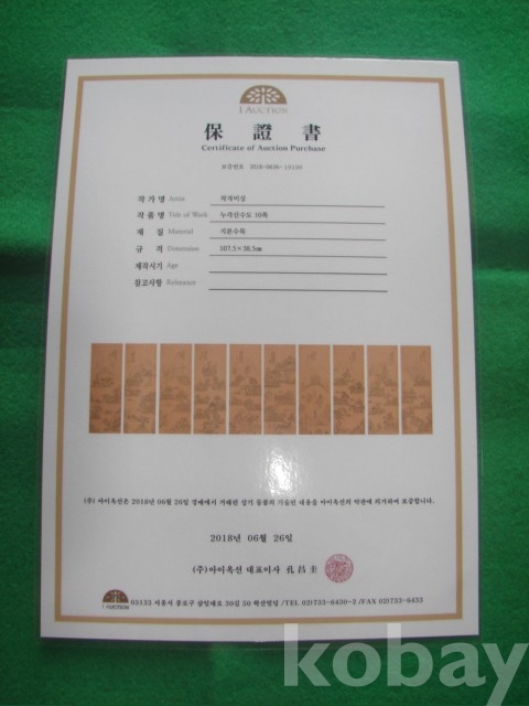 # 상단 갈라짐 있음.(사진참조) I-옥션 보증서 있음. 10폭 중 1폭임.