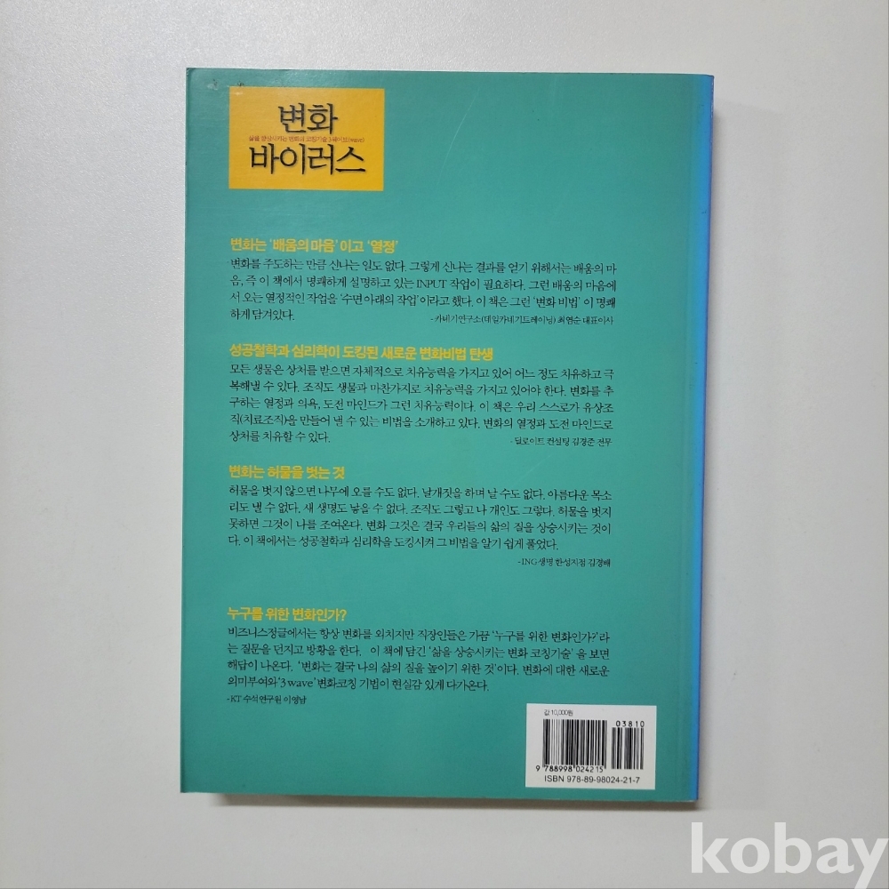 [천원경매] 변화 바이러스 - 삶을 변화시키는 변화의 코칭기술 3웨이브 ; 상급/서고-업무02