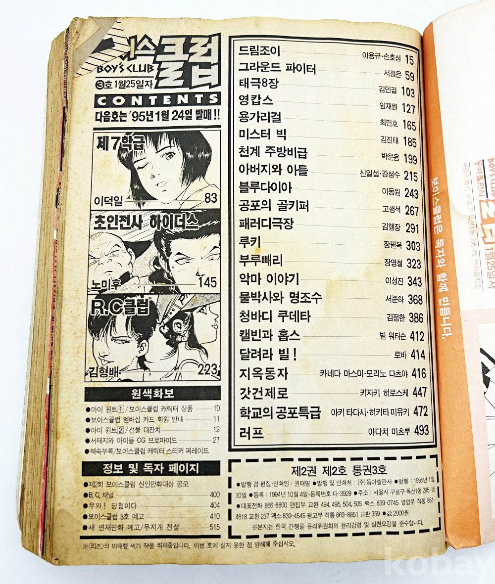 상품 설명 | 격주 발행되는 만화잡지 '보이스클럽' 신년특대호이다. 총 514p. | ||