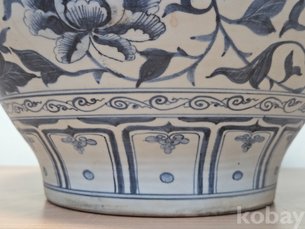 반듯한 형태와 정교한 도안 및 14세기 원청화 최고급자기들에서 나타나는 청화안료의 깊은발색과 소마리청이라불리는 이시기 코발트안료의 특징적인 입자감등. 모든면에서 압도적인 면모를 갖춘 걸작품으로 전문적인 감정을 받아볼 기회가 있으리라 생각했지만 아직 감정은 받지못했습니다. 미감정품.