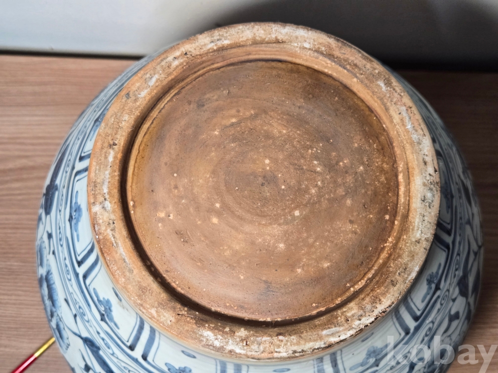 도자의 표면 상태는 해양발굴도자인듯 여기어지는 전반적인 광택유실이 있고 군데군데 미세 사용흔, 바닥엔 전체적으로 짙은 산화변이 보입니다. 물레로 성형된 도자로 기벽이 두터워 아주 묵직합니다.