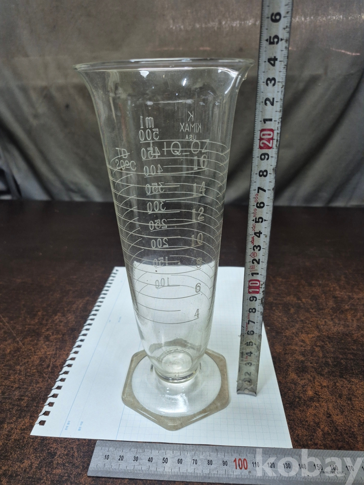 빈티지 유리 약학 실린더 세트 KIMAX 붕규산 유리 로 제작 되어 있어요 메이드 인 USA 10*10*24