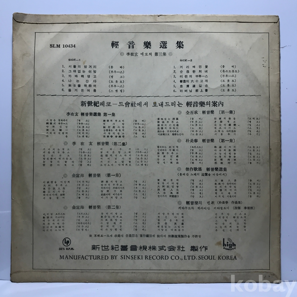 LP 83,840-29 경음악선집 - 이재현 메로디 제3집 . 자켓 EX 알판 EX 국내반