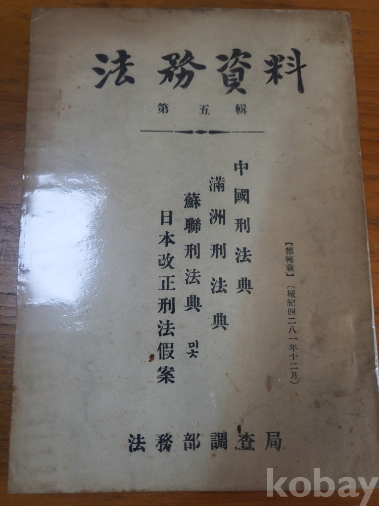 1. 법무자료 제5집 - 중국형법전 만주형법전 소련형법전 일본개정형법가안, 법무부조사국, 1948년, 286쪽, 상태 상, 사진 참조