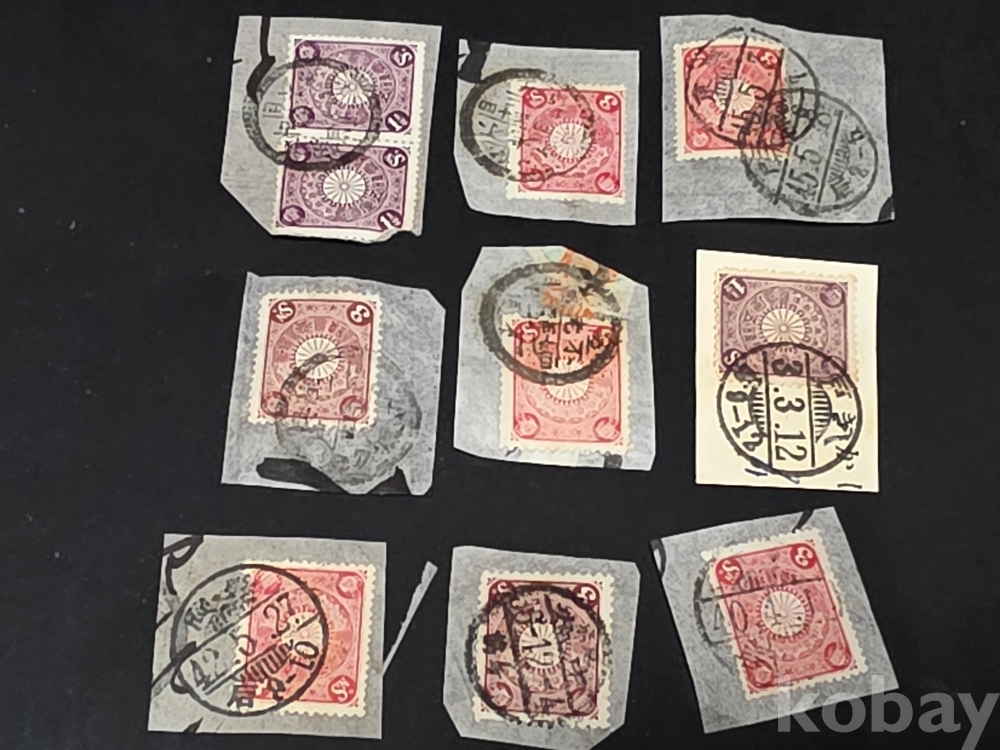 일본 1900년 이후 만월 국화 우표 10장. 1900년대 준클래식 우표