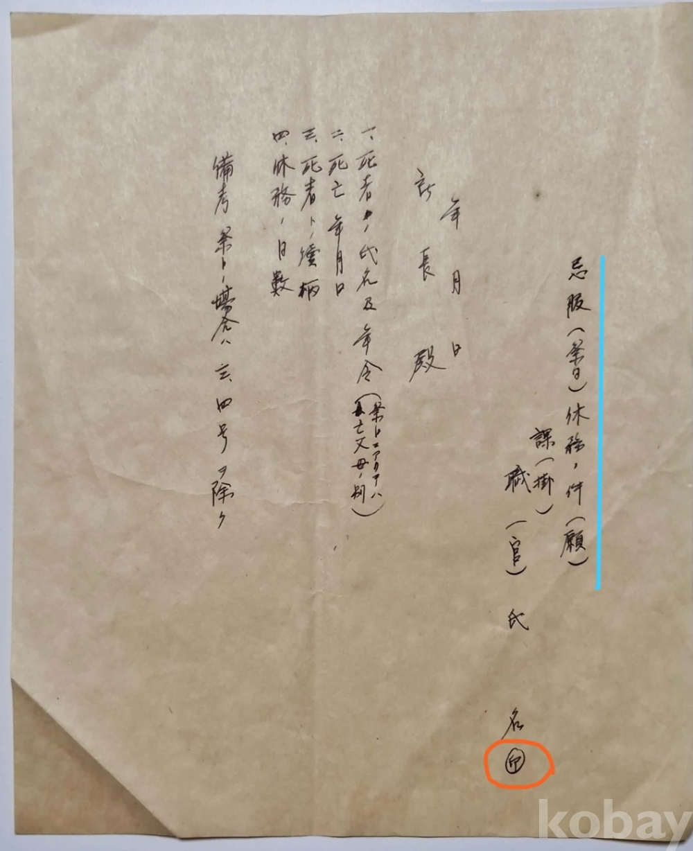 ⓹ 기복(忌服=祭日) 휴무(休務) 건(件) 원(願)