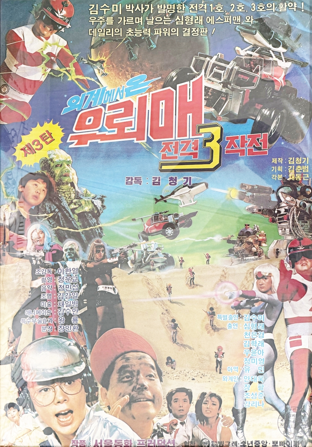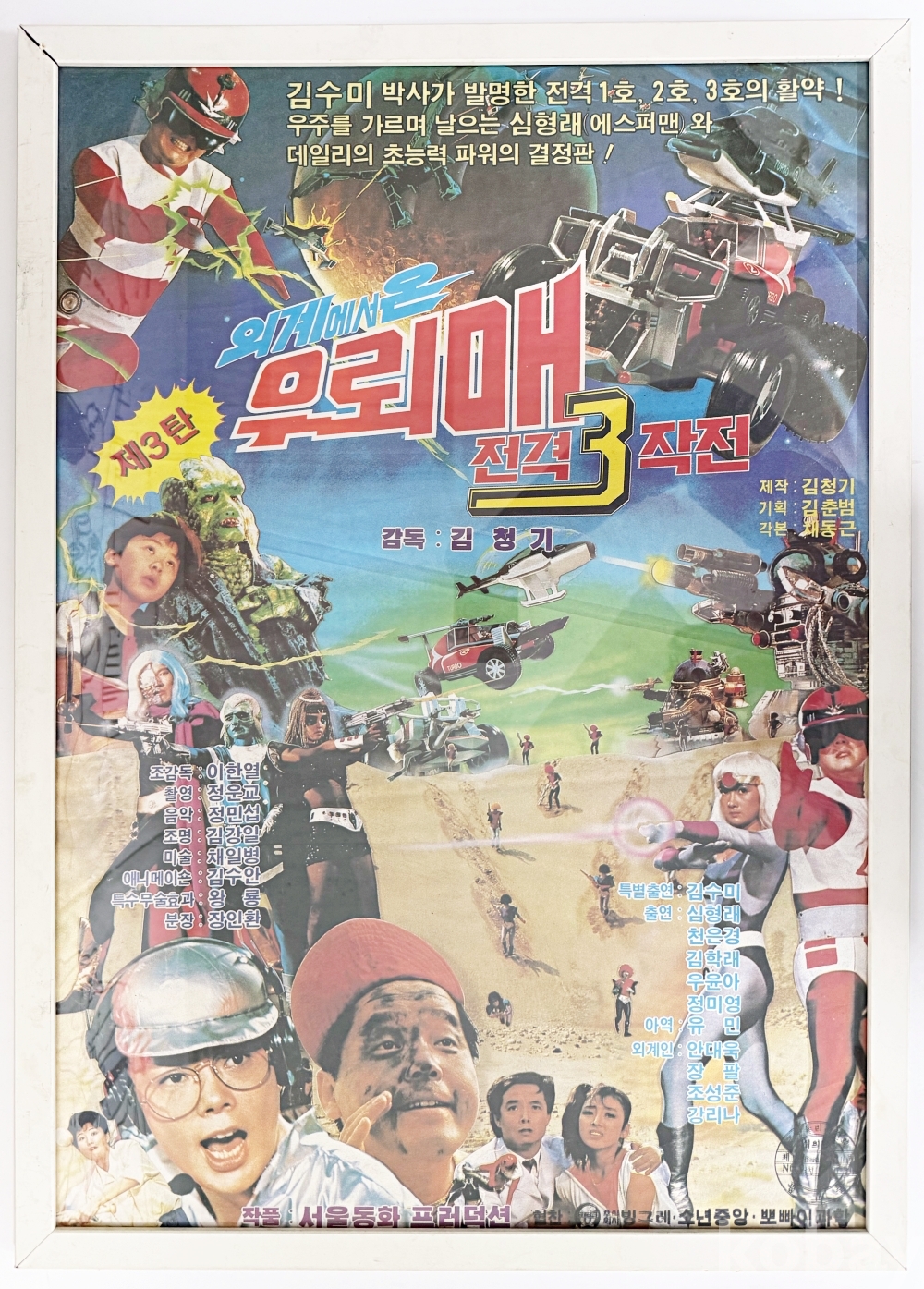 상품 설명 | 심형래가 주연을 맡은 특수촬영 영화 '외계에서 온 우뢰매 전격 쓰리 작전' 포스터이다. 액자 처리됨. | ||