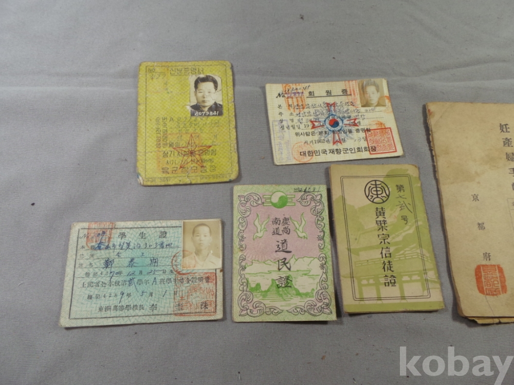 매우 희귀한 임산부 수장과 학생증,도민증,신분증명서,회원증