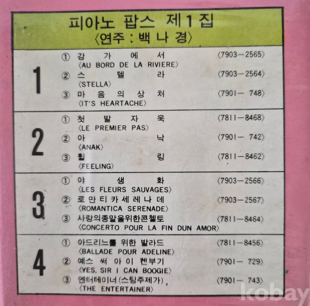 [8트랙 테이프 기획전] [미개봉] [피아노 팝스] 연주 백나경 / 강가에서 첫발자욱 아드리느를 위한 발라드 外