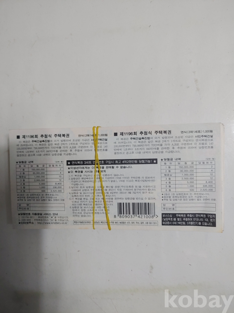 ★천원출발★ L-2.164 90년대 주택복권 150장