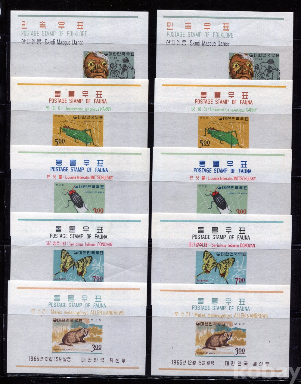 - [시트] 1966년 미사용 동물시리즈 시트모음 ( MNH : Mint Not Hinged,뒷면 힌지자국없는 깨끗한 상태)