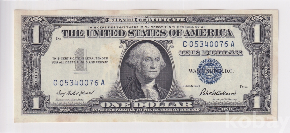 - 1957년 미국에서 발행된 블루씰 1달러 지폐 입니다.