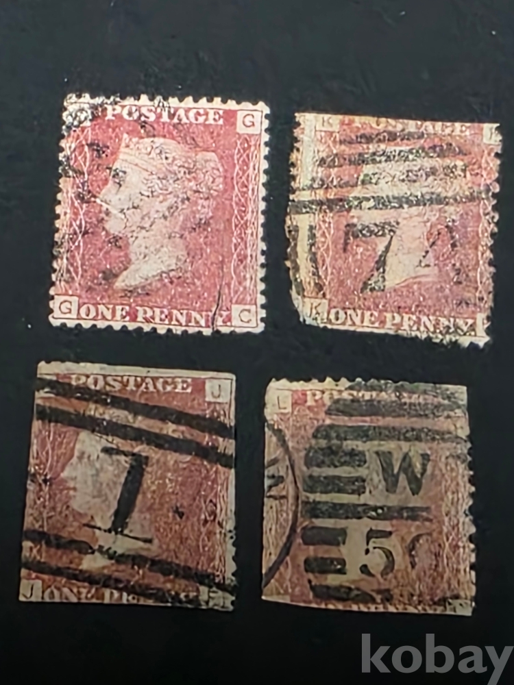영국 레드 원 페니 1854년~ 사용한 희귀 우표 4장 일괄. 세계 최초 우표 시리즈 클래식 우표.
