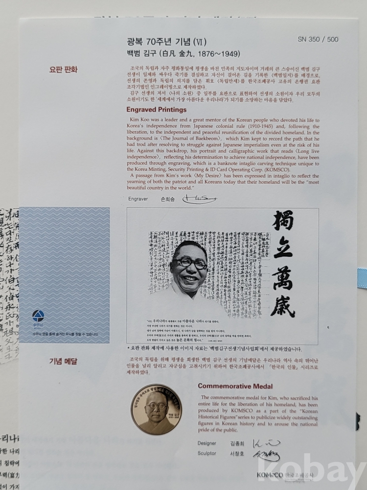 광복70주년 김구 요판화 메달세트
