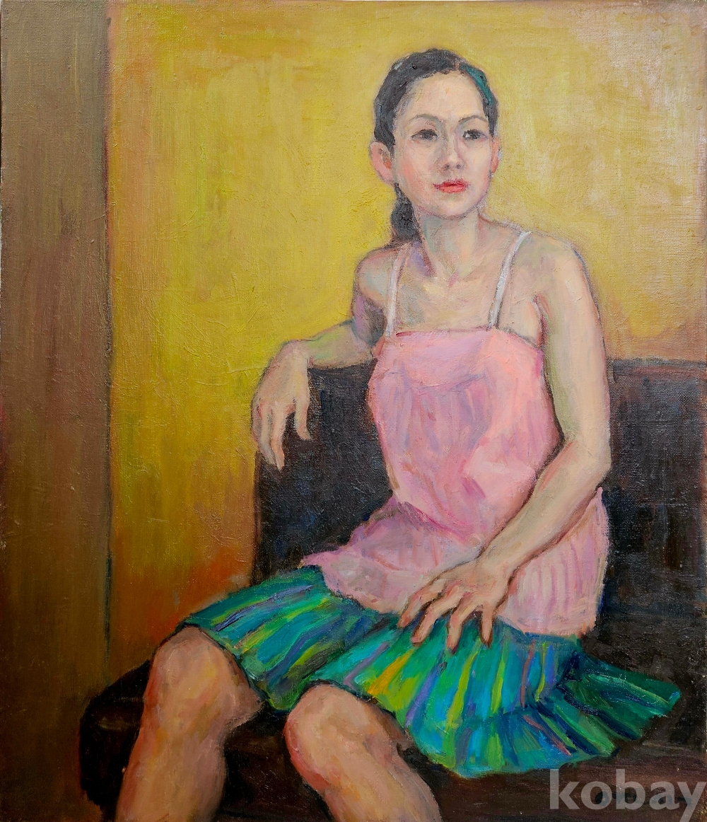 초록 치마가 강하게 대비되면서도 따뜻하게 어울립니다.