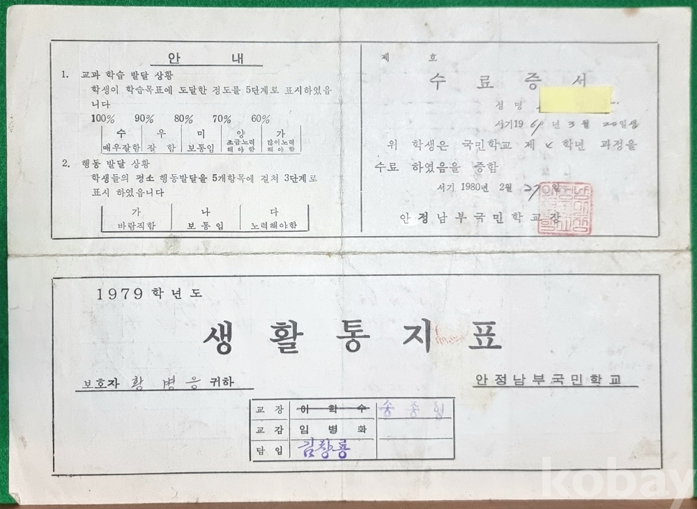 졸업장/통지표/상장_안정남부국민학교/1979년도/4학년 생활통지표/