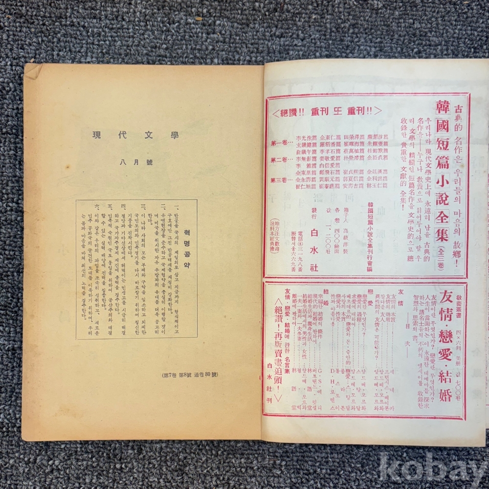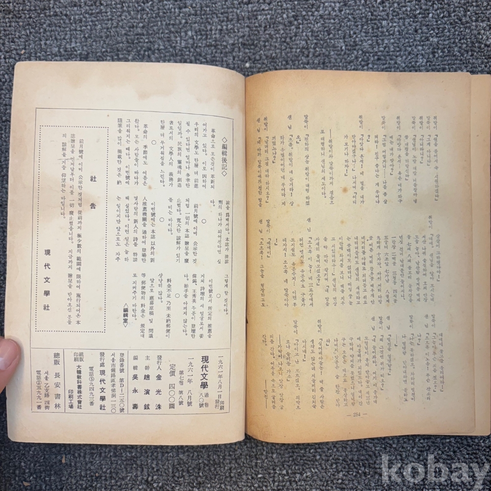 [한국현대사, 문학] <현대문학 1961년 8월호 (제7권 제8호) >, 현대문학사, p. 284, 상태 중급(사진참조)