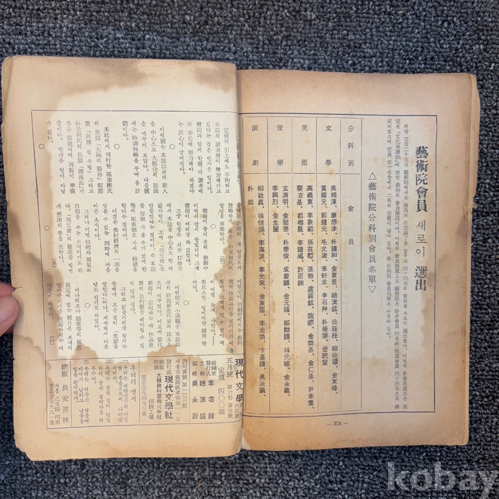 한국현대사, 제2공화국] <현대문학 1960년 5월호(표지화 : 장우성)>, 현대문학사, p. 324, 상태 하급(사진참조)