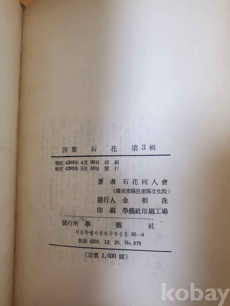 1. 석화 제3집, 석화동인회, 학예사, 1960년, 95쪽, 상태 상, 사진 참조
