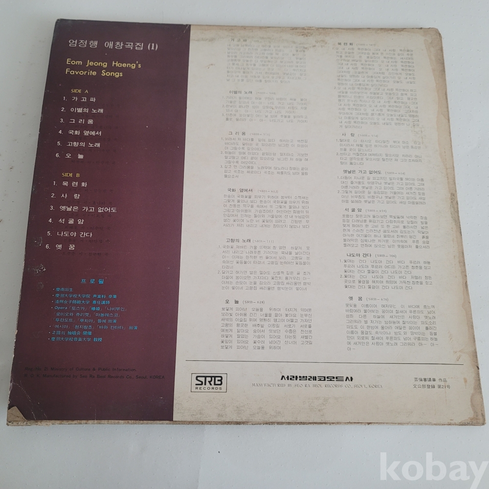 | 자켓상태 | EX : 약간의 마모, 모서리 찢김 존재 | 음반상태 | NM : 개봉했으나 미사용급, 스크래치 없음 | 발매정보 | 알수없음 | 가사지여부 | 무 |