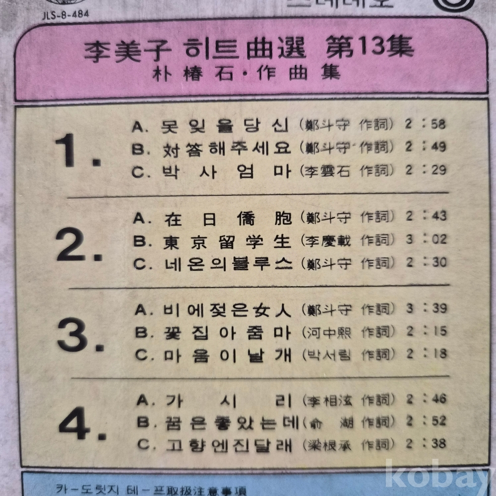 [8트랙 테이프 기획전] [이미자] 히트곡선 제13집 / 못잊을 당신 재일 동포 비에젖은 여인 外