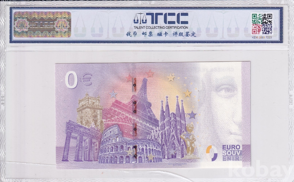 - 뒷면: 에펠탑, 콜로세움, 브란덴부르크 문 등 유럽의 주요 랜드마크가 그려져 있습니다.
