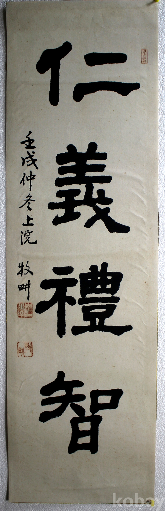 대한민국서예대전 초대작가 및 심사위원을 지낸 牧畊(목경) 이기남의 서예작품 - 仁義禮智(인의예지)