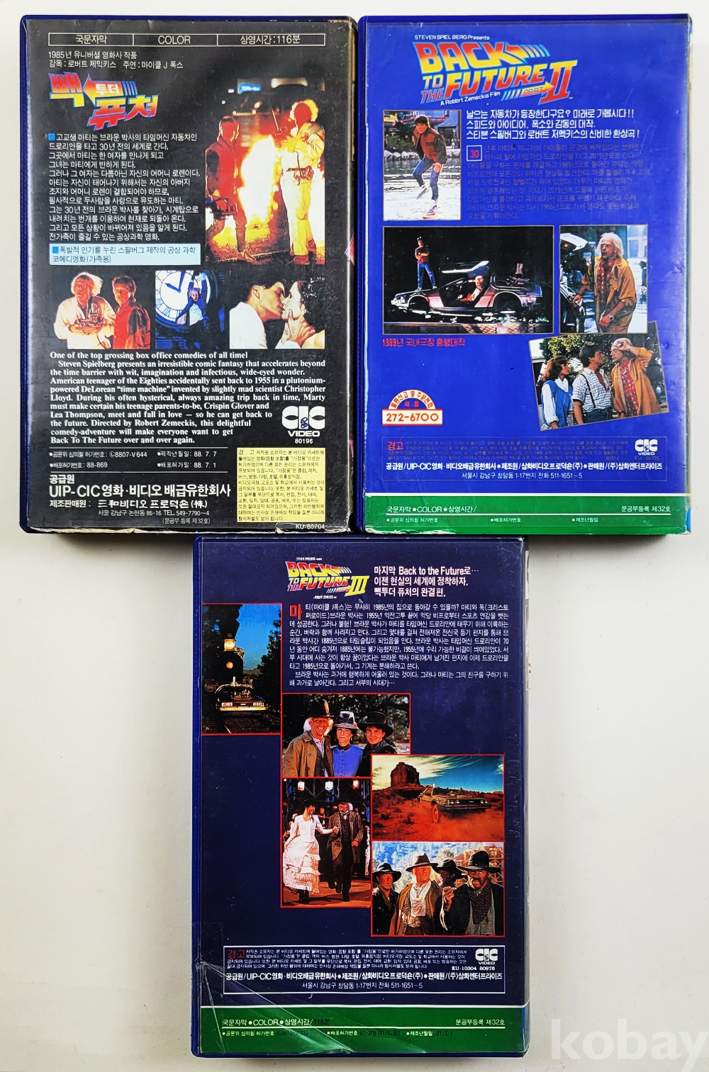 물 품 명 | 빽투터퓨쳐 (1,2,3) 총3편 / 1988,90,91년 / CIC, 삼화비디오 |