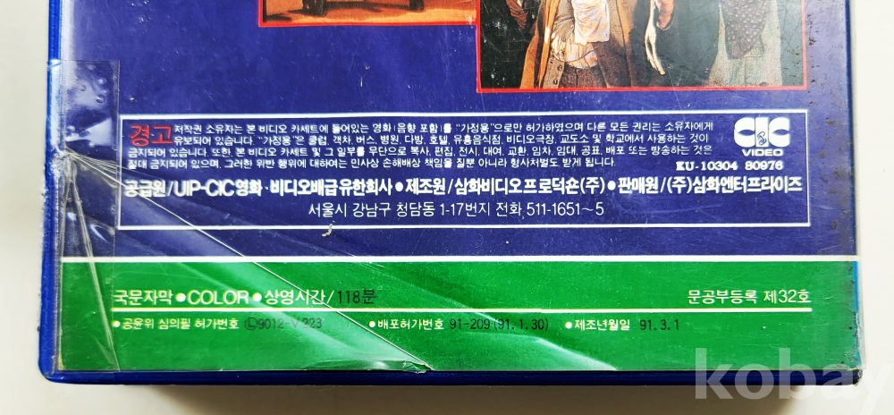 상 태 | 기획경매로 진행할 비디오테이프가 많아 재생여부 확인 불가 및 재생상태 확인 안함. 간혹 보이는 비디오테이프에 발생한 곰팡이들은 세월의 흔적으로 필요하시면 관련업체에 의뢰하시어 세척을 하셔야 합니다. 단, 흰색곰팡이는 리와인드로 한번 돌려주면 제거가 가능하나 검정색곰팡이는 세척을 하여도 화면재생이 안됩니다. 그래서 각각의 비디오테이프의 오염상태를 사진으로 올리오니 보시고 참고하여 주시고 상태가 안좋은 것은 화질의 질을 떠나 비디오테이프 그 자체의 존재에 소장 의미를 부여하시는 분들만 입찰하여 주시길 권유합니다. 부득이 반품신청시 사전에 판매자에게 미리 연락주시기 바랍니다. 비디오테이프는 재생하는 기계의 상태에 따라 화질이 다를 수 있는 등 분쟁의 소지가 많은 품목입니다. 사전 연락없이 반품신청시에는 입찰제한자로 등록하겠습니다. 훼손 및 오염 정도(강,중,약,양호로 표시합니다.) - 케이스 & 삽지 : (1,2)중 - 오염, 훼손 (3)약~중 / 라벨 : (1,2,3)약 / 테이프 : (1,3)약 - 미미 (2)양호 / 곰팡이 : (1,2,3)양호 / (1)1988년 (2)1990년 (3)1991년 |