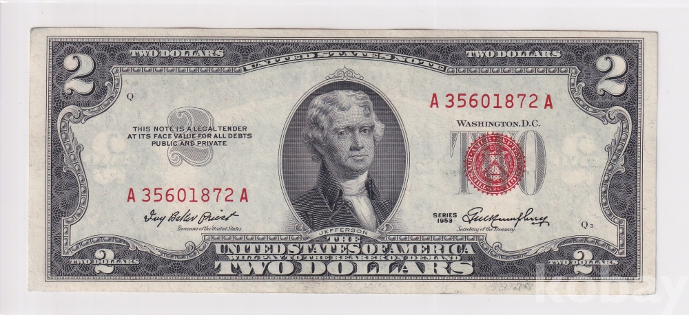 - 1953년 미국에서 발행된 행운의 2달러 레드씰 지폐 입니다.