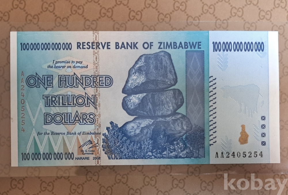 나라 : 짐바브웨 액면 : 100,000,000,000,000 달러