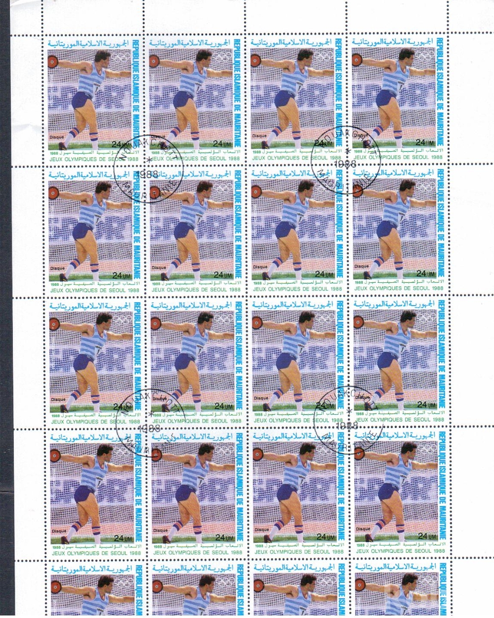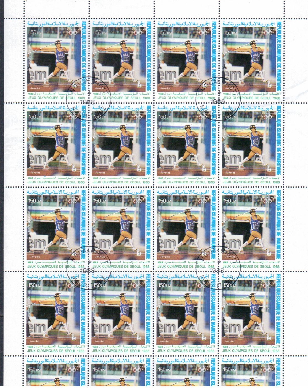 88서울올림픽 머리타니 4완 소인전지 [우표.시트 희귀품 ]