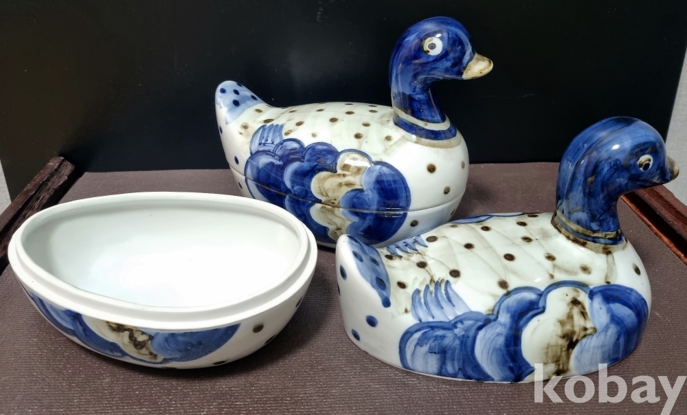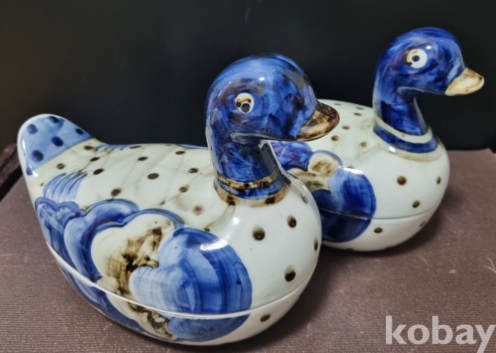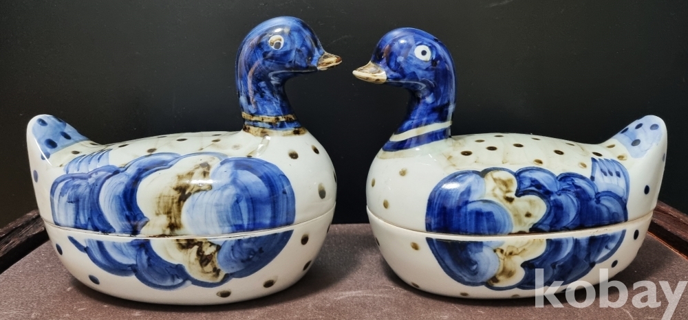 백자청화철화오리합 大 작품 < 한쌍 > < 오리함 中 가장 큰 사이즈 작품 >