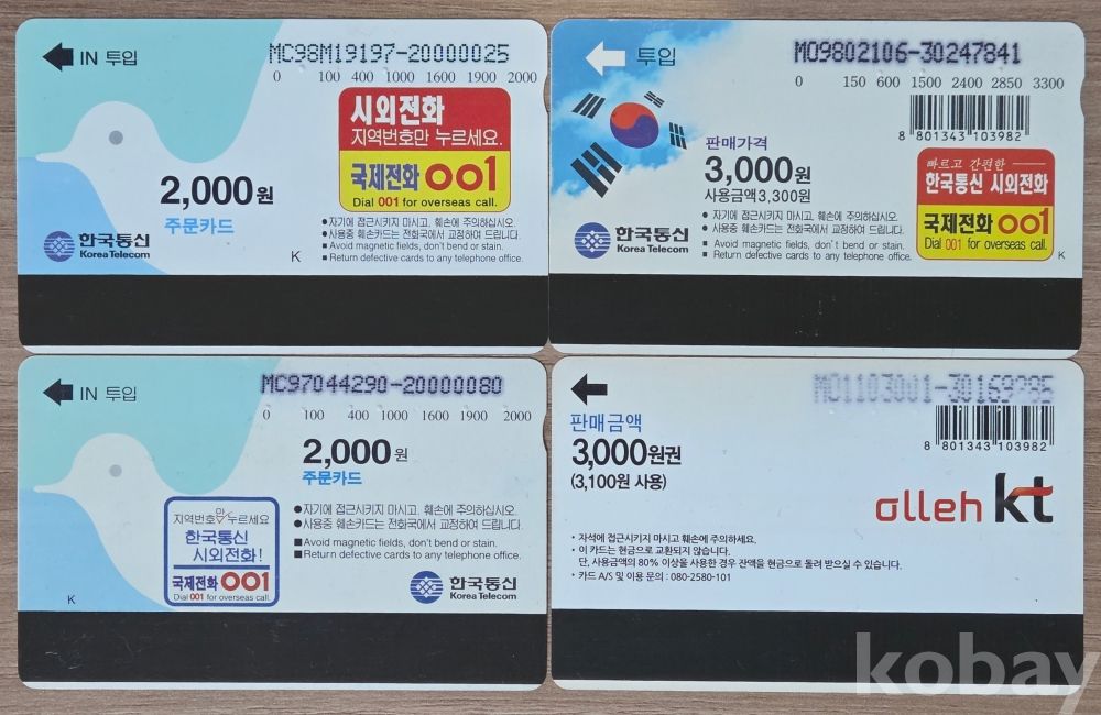 희귀 8-90년대 공중전화카드 4종 #39