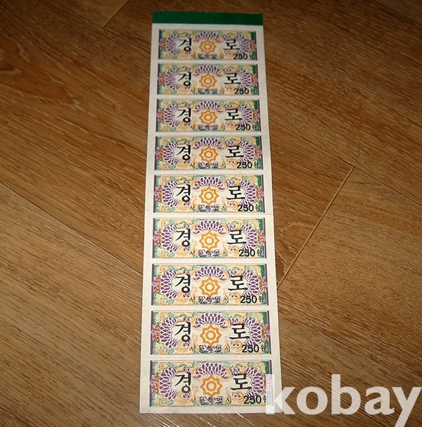 90년대초 서울특별시 경로 승차권 미사용 1매