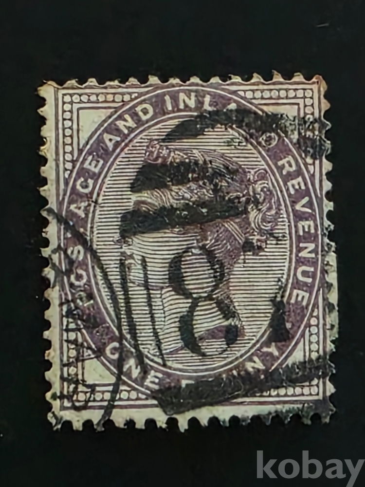 영국 식민지 말레이 지역 1867년 원페니 우표. 1800년대 클래식 우표