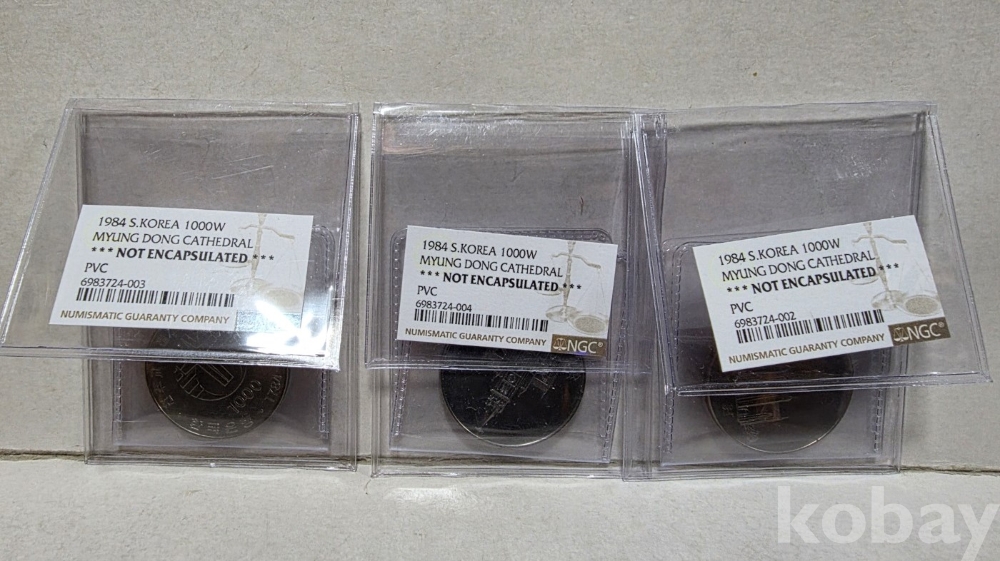 -대한민국 각종 기념주화 3종이며 NGC 그레이딩 보냈으나 등급 못받고 돌아온 주화 입니다.