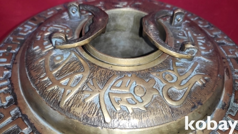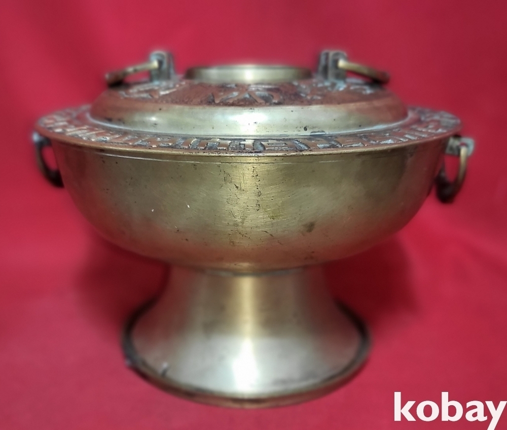짱짱한 연대 갖춘 황동으로 완성된 상형문자(象形文字)문양 신설로 (神仙爐) 입니다,