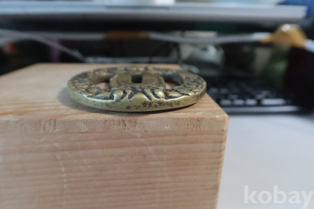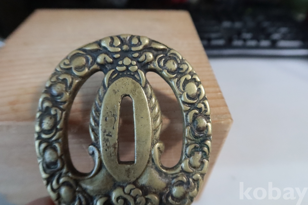 담금질 투각 츠바 임니다 단단한 금속을 투각 처리 한 정성이 대단한 명품 임니다 강철 담금질 사무라이 츠바 19세기 혹은 이전의 츠바 특이한 디자인을 가진 명품 임니다 통칭 츠카시 츠바 이며 사무라이 아부미가 보이는 명품 임니다