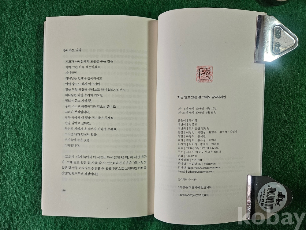 1] 품명 : 잠언 시집 " 지금 알고 있는 걸 그때도 알았더라면 " - 류시화 엮음
