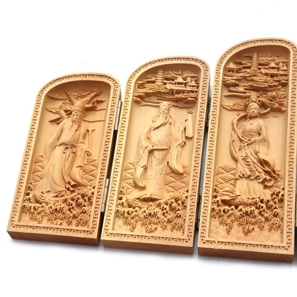 나무를 조각하여 만들어진 8폭 석가모니 관세음보살 불감 입니다.