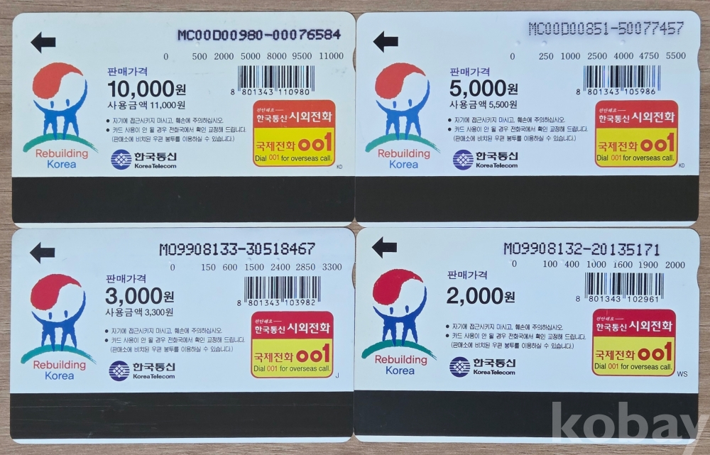 희귀 8-90년대 공중전화카드 4종 #60