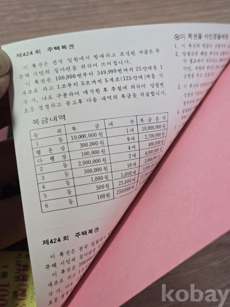 <투킴스> 희귀품, 1980년 424회 주택복권 복식 견본권, 한쌍